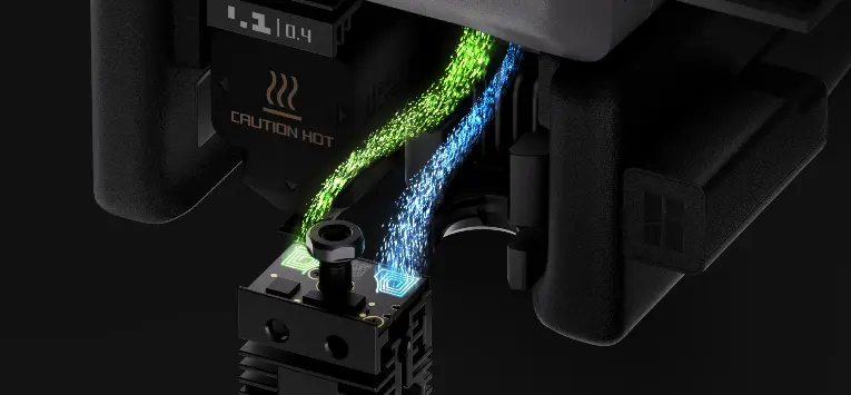 Beim herkömmlichen Multimaterialdruck mit einer einzigen Düse ist eine Spülung erforderlich, um Materialreste zwischen den Filamentwechseln zu entfernen. Vortek ändert dies mit einem intelligenten Hotend-Swapping-System, das das gesamte Hotend ersetzt und schnellere, sauberere Drucke mit minimalem Abfall liefert.