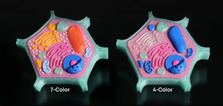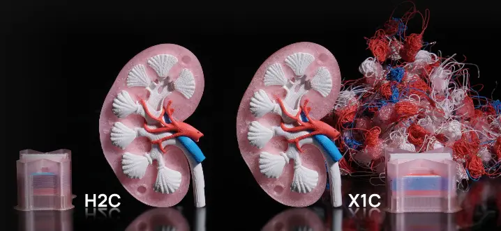 Im Gegensatz zu herkömmlichen Druckern mit Werkzeugwechsler, bei denen die Anzahl der Farben durch die Anzahl der Werkzeugköpfe begrenzt ist, unterstützt der H2C durch parallel geschaltete AMS-Einheiten bis zu 24 Materialien in einem einzigen Druckvorgang. Sein intelligenter Algorithmus optimiert die Zuweisung von Filament zu Hotend, um den Reinigungsabfall zu minimieren und gleichzeitig hervorragende Ergebnisse bei Mehrfarben- und Mehrmaterialdrucken zu erzielen.