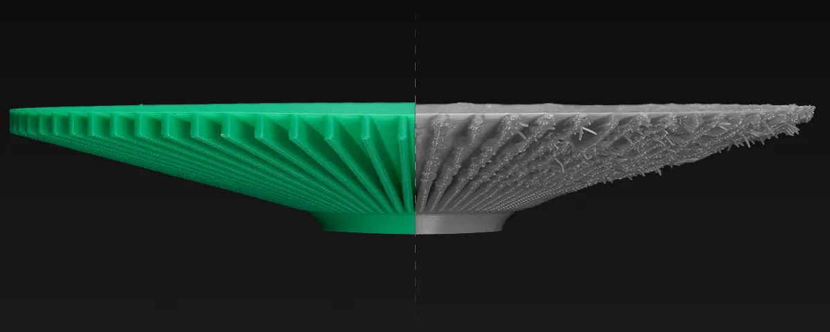Durch das überarbeitete Luftzirkulationssystem verfügt der Bambu Lab P2S über eine optimierte Kühlung des Bauraums und der Bauteile. Dadurch lassen sich selbst anspruchsvolle Geometrien, wie steile Überhänge sauber drucken.