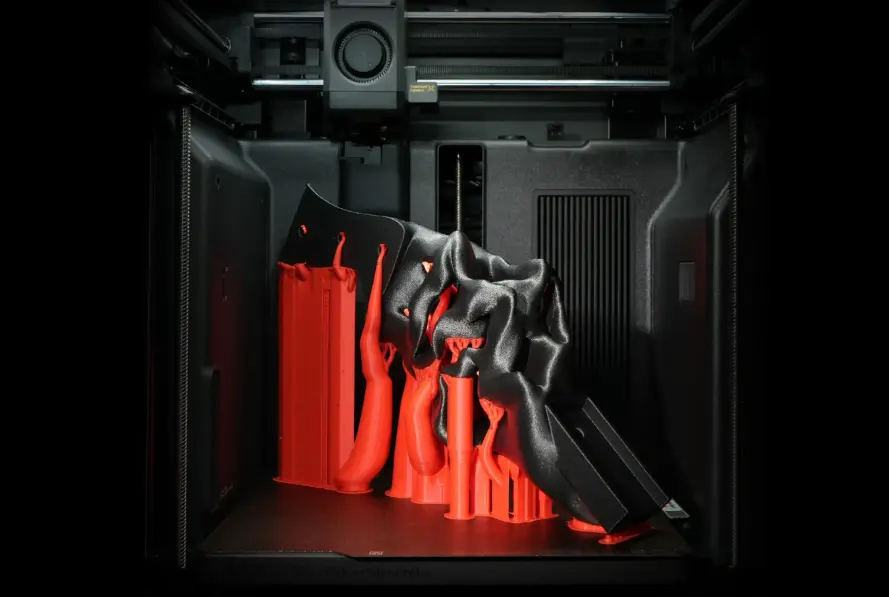 Neben funktionalen Supports überzeugt das Dual-Nozzle-Design auch beim Multicolor- und Multimaterialdruck. Durch den direkten Düsenwechsel entstehen schnellere Farbwechsel, sauberere Übergänge und deutlich weniger Ausschuss. Gleichzeitig eröffnet der X2D neue Möglichkeiten für funktionale Bauteile, etwa durch die Kombination von festen und flexiblen Materialien wie PLA und TPU in einem einzigen Druckprozess.