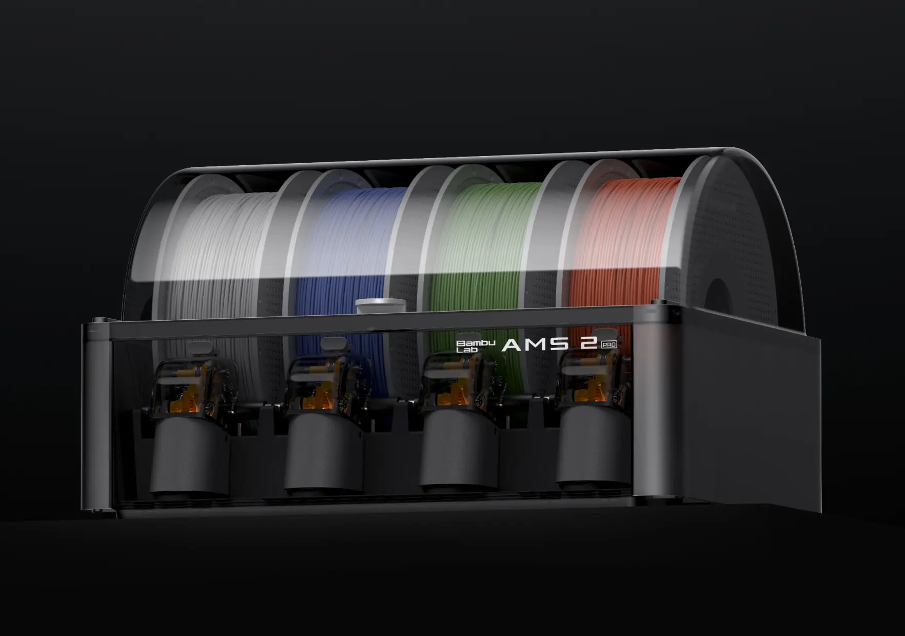 Das AMS 2 Pro ist das neueste Materialwechselsystem von Bambu Lab und wurde speziell für den zuverlässigen Multimaterial- und Mehrfarbendruck entwickelt. Es bietet Platz für bis zu vier Filamentrollen und kann mit bis zu vier Einheiten gleichzeitig kombiniert werden - insgesamt 16 Rollen in einem Druckjob.