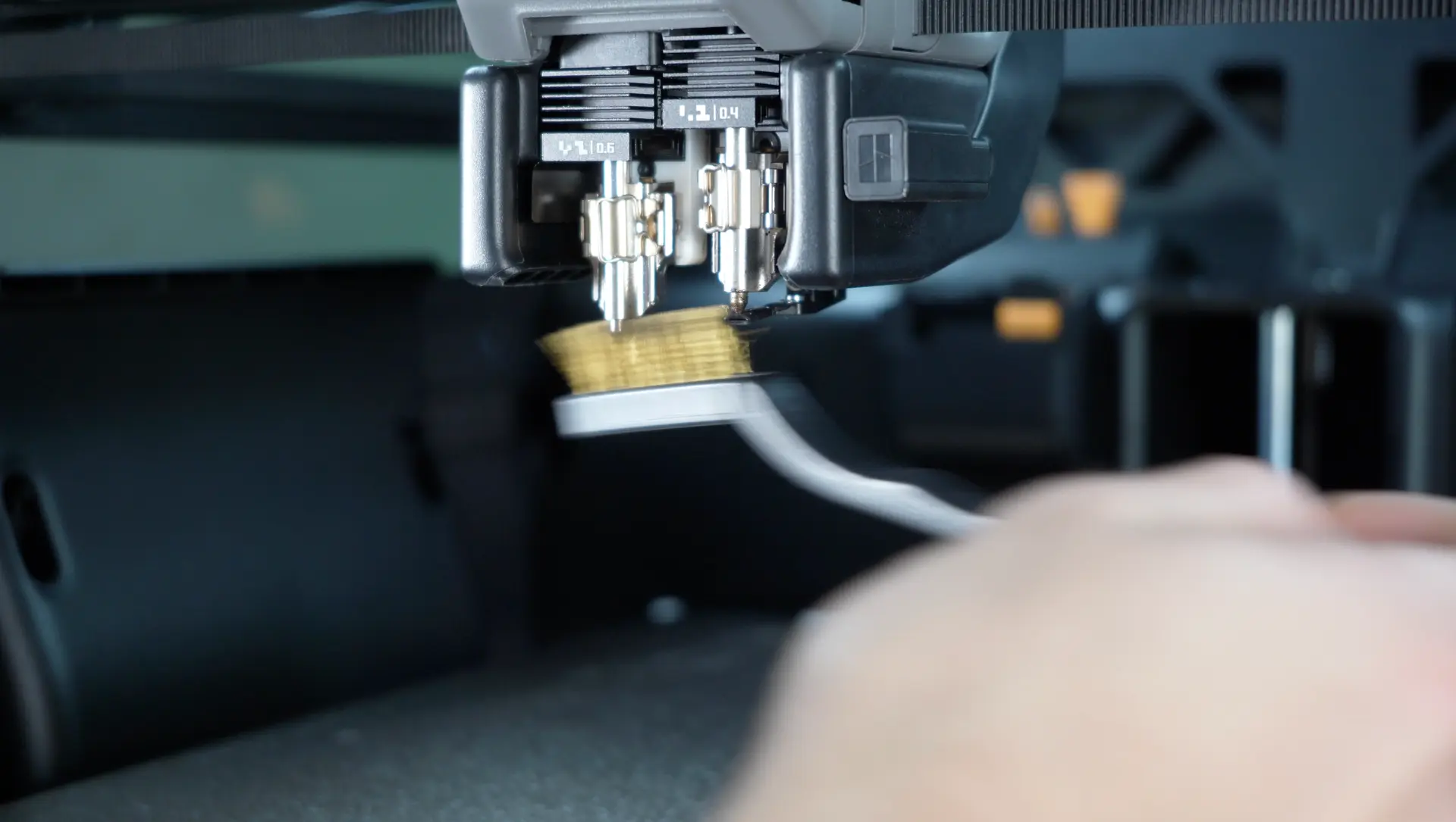 Auch Düse und Hotend sollten kurz visuell kontrolliert werden. Anhaftungen können die Haftung der ersten Schicht beeinträchtigen oder im schlimmsten Fall zu Kollisionen führen. Das eingesetzte Filament sollte trocken, unbeschädigt und frei von Staub sein, insbesondere bei technischen oder faserverstärkten Materialien.