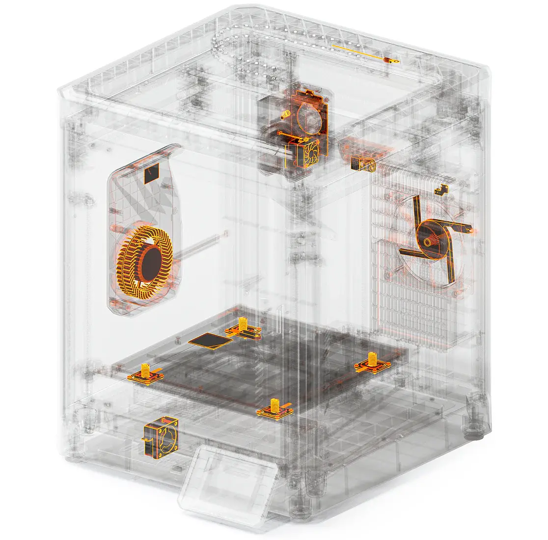 Ein robustes Kühlsystem mit Highspeedlüftern sorgt für eine präzise Temperatur im inneren der Kammer um eine zuverlässige Performance bei komplexen Modellen und Filamenten zu gewährleisten.