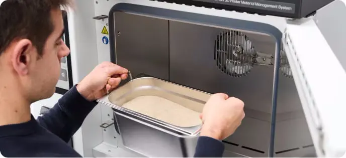 Verbessern Sie die Festigkeit, Hitzebeständigkeit, Langlebigkeit und chemische Beständigkeit Ihrer Bauteile durch integriertes Tempern für Hochleistungsmaterialien wie PEEK und PAEK. Der MMS verfügt über vorprogrammierte Glühzyklen für HP 3D-Filamente, die eine schnelle Einrichtung und konsistente Ergebnisse in nur wenigen Schritten ermöglichen und so eine zuverlässige Leistung auf Industriestandard gewährleisten.