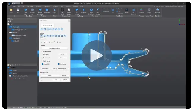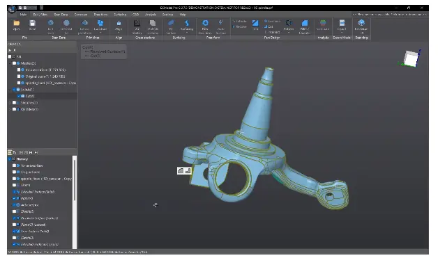 Die Software ist nicht nur parametrisch für Standard-Features, sondern ermöglicht auch die Erstellung von CAD-Modellen durch eine Mischung aus Freiform- und prismatischen Features. Die Benutzer haben die Flexibilität, Freiformflächen bei Bedarf zu überarbeiten und zu modifizieren, so dass die Ergebnisse problemlos rekonstruiert werden können.