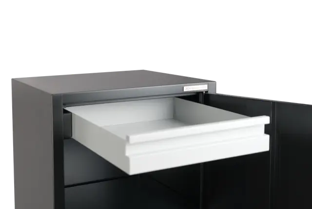 Zusätzlich ist eine geräumige Schublade integriert, in der Kleinteile oder empfindliches Zubehör ordentlich und griffbereit aufbewahrt werden können.