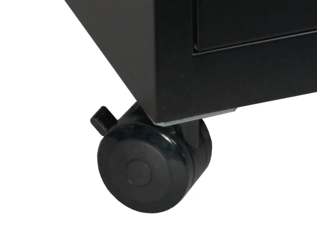 Die mobile Variante ist mit hochwertigen Lenkrollen ausgestattet, die sich per praktischem Kipptritt arretieren lassen. So können Sie den Schrank bequem an die gewünschte Position fahren und anschließend sicher und stabil feststellen.